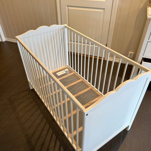Gir bort dette godt brukte babynestet, er i god stand bortsett fra at handtakene på sida er slitt bort.