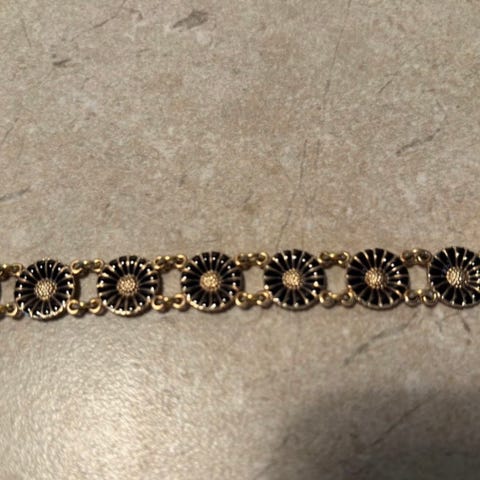 Armbånd fra Bibi i skinn med pynt og stener. Lengde ca 38 cm. Lukkes med magnet