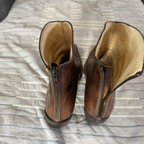 Ankelstøvletter i svart skinn i størrelse 38. Modellen har middels høy hæl og rund tå. Støvlettene har glidelås på innsiden for enkel av- og påkledning, samt dekorrem med metallspenne rundt ankelen. Passer som hverdagssko eller til penere antrekk i kjøligere vær. Damemodell.