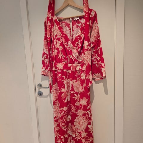 Lang grå kjole med blomster, str L/XL, lite brukt