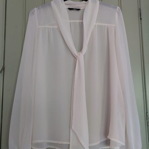 Offwhite bluse I viskose. Str M, men romslig.Knapper helt ned. Pent og lite brukt. Sendes