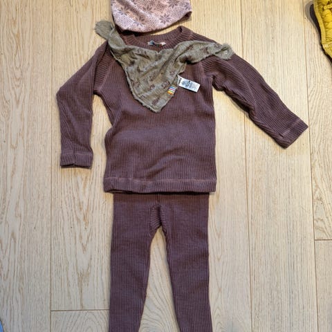 En myk ulldress, 8 Kjoler, joggedresser, 6 bodyer ull/fleece, 20 sokker i ull og bomull, 6 pysjer, 4 sandaler, 2 kortermet body, 5 tynne gensere, 7 sweatshirt, 2 hettejakke, 3 cardigan, sommerkjole, 2 strømpebukser, 10 thights, 1 juicy couture joggedress, 5 ullbodyer, 1 tykk ulldress, 5 ullbodyer, skjørt, singlets, m.v.
