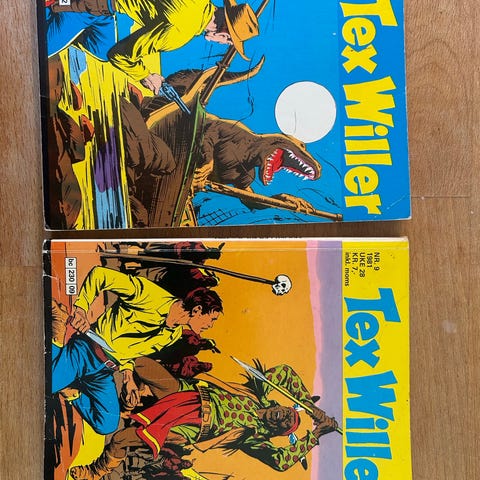 Tex Willer hefter 1991 nr 3, 1992 nr 11, 1993 nr 15, 1995 nr 4 og 7. Stort sett Pent brukt, noen få har mer bruksspor