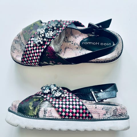 Verdens nydeligste sko. De er sølv med små dråpelignende stener på hele skoen Jeg har brukt den to ganger, men de ble dessverre for høye for meg. Allikevel er dette noen av de peneste skoene jeg noengang har hatt. Selges med klump i halsen 🩶