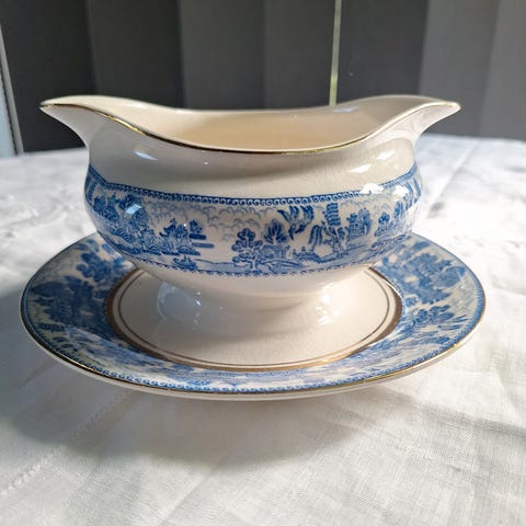 Vintages Blue Willow Design Stainless Steel. Fremstår som nytt i original esken. Helt og pent.