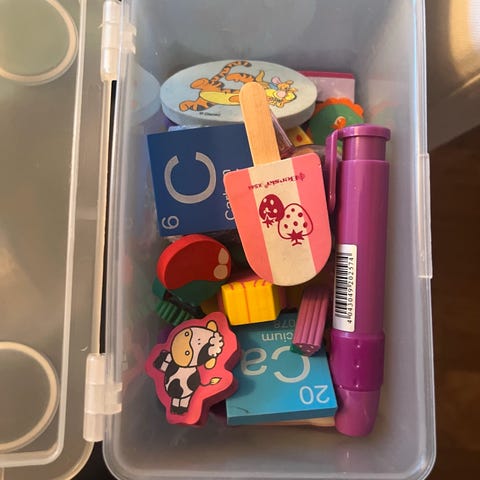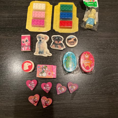 Har en boks med masse viskelær.. noen er brukt og noen er ikke..søkte opp på nett så mulig det kan være noe samleobjekter der men det tørr jeg ikke si 100%