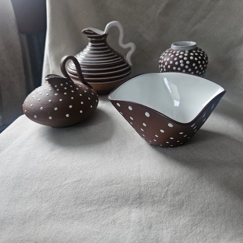 Keramikkskål, men sannsynlig av William Knutzen, produsert på Graveren på slutten av 40 tallet. Høyde 8, diameter 18 (øverst)