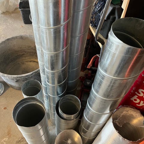 Ubrukt ventilasjonsrør / spirorør i galvanisert stål.