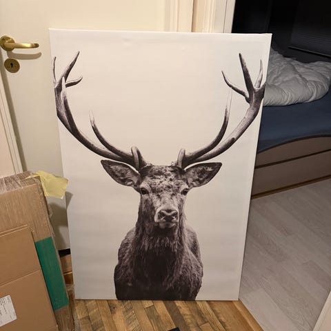 Bilde av hjort/skog fra Desenio med hvit ramme