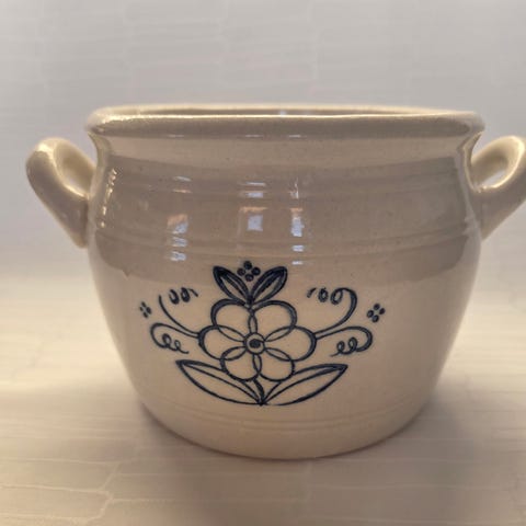 Krukken er 26 cm høy og har diameter på det bredeste på ca 20 cm (25 cm inkludert hanker). Fremstår i svært god stand for alderen. Det er et merke/hakk på den ene hanken, sannsynligvis fra produksjonen (se nest siste bilde). Pris 1500,-