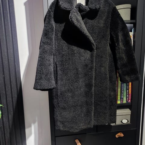 Kjolestørrelsen på etiketten er 34. Personen på bildet bruker klær i størrelse 38 hver dag.
