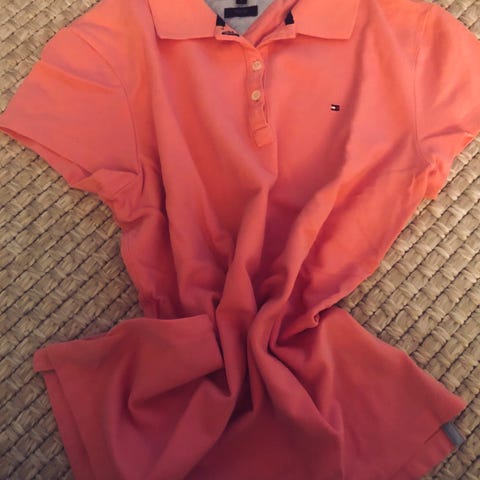 Selger to helt nye pg behagelige poloskjorter fra Tommy Hilfiger, begge i str L slim fit (dame). En hvit og en rød, 94/96 % bomull, 6/4 % elastan.