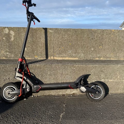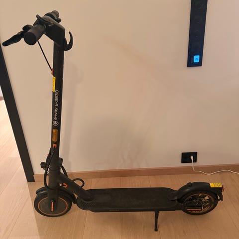 Den har vært mye brukt og trenger litt småfix, men fungerer greit ellers. Perfekt for noen som kan fikse litt selv, eller trenger en rimelig el-sparkesykkel.