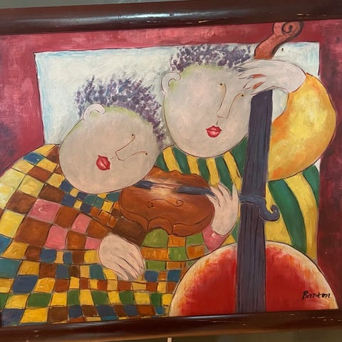 Ser ut som et J. Roybal maleri, men det er signert med Barton. Så jeg aner ikke.