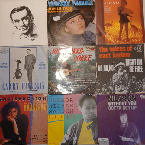 157 Pene og lite spilte vinylsingler selges for høyeste bud, eller 10,-pr. stk