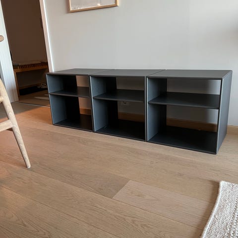 Montana skuffer/nattbord blåaktig farge med svak glitter