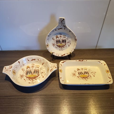 Ildfast fat av Inger Waage i god stand. Dekoren er litt falmet etter bruk, men fortsatt ganske fin.
