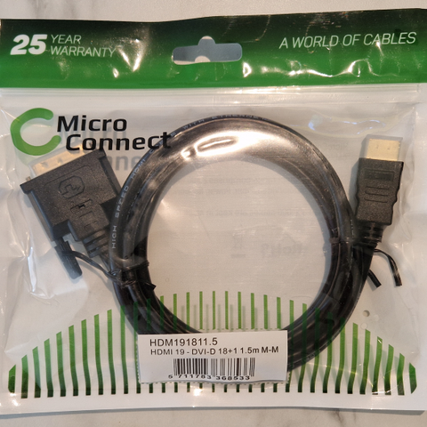 Dette er høyytelseskabel med HDMI-kontakt i den ene enden og en DVI-kontakt på den andre.