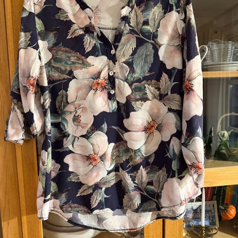 Blusen passer fint til spesielle anledninger, kontorjobb eller til et fint skjørt. Brukt kun to ganger ☺️. Blusen er litt gjrnnomsiktig