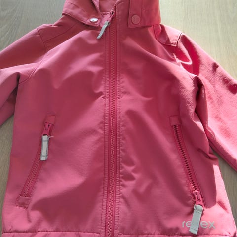 Pen Reima regn/ allværsjakke str 92. Nydelig snitt, lenger bak en fremme. God i str. Logo slitt, se bilde.