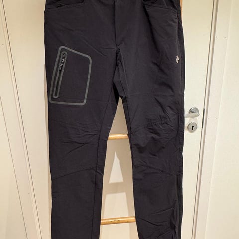 Bra softshellbukse fra Peak Performance. Lite brukt. Gråblå farge. En lomme på lår. Glidelås for å utvide ben ved bruk av kraftige sko.