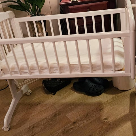 En enkel vugge som et alternativ å legge baby i på dagtid i oppholdsrom. Er en slags uro med musikk noe lys greier som kan være interessant.