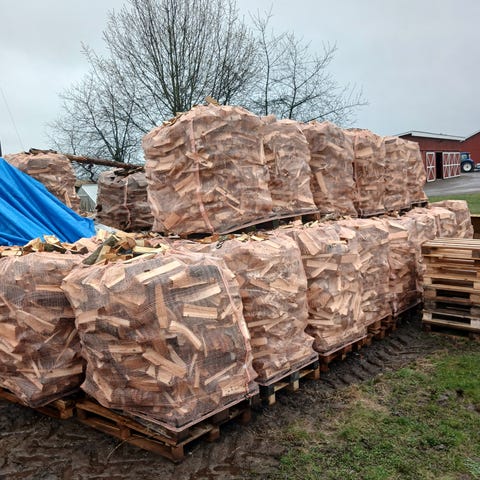 Bjørkeved i 1000L sekker. Tømmeret er høgd sent i fjor høst og kløyvet i starten av mars/april. 1300,- per sekk.