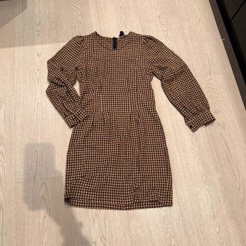Pent brukt kjole fra Second Female i str. 42. Kan også passe en liten 44. Underkjolen er 54-55 cm fra underarm til underarm. Kjolen er 61 cm fra underarm til underarm, og 108 cm lengde. Har løs underkjole. Veldig fin på. Polyester