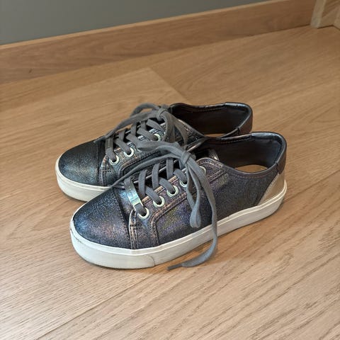 Grå sneaker med strass str 38. Kombinert semsket og vanlig materiale. Aldri brukt, kjøpt i London. Ingen skader, merker eller lukt. Kan hentes i Trondheim evt sendes via Fiks ferdig eller Posten. Esken kan medfølge men da blir frakten dyrere.