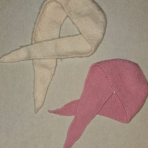 Jeg selger håndstrikkede «miniskjerf» i mange fine farger, ulike garntyper, mønster og lengder.