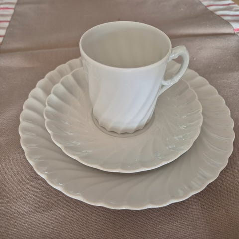 Bogstad kaffeservise , hvit med gullkant, fra Porsgrunn porselen.