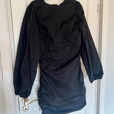 Sort kjole med lange ermer fra Na-kd. Kun brukt en gang. Stoffet er flatterende med rynker. Skjult glidelåsen i siden.