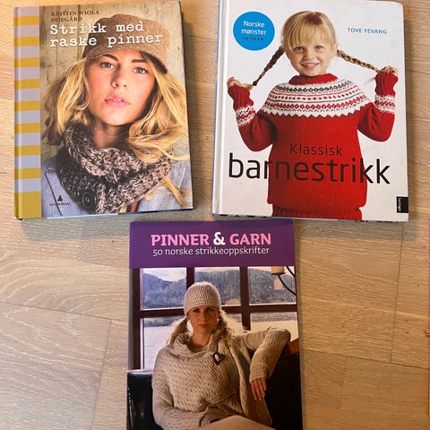 3 strikkebøker. Fremstår som nye, ikkje brukte, kun bladd litt i.