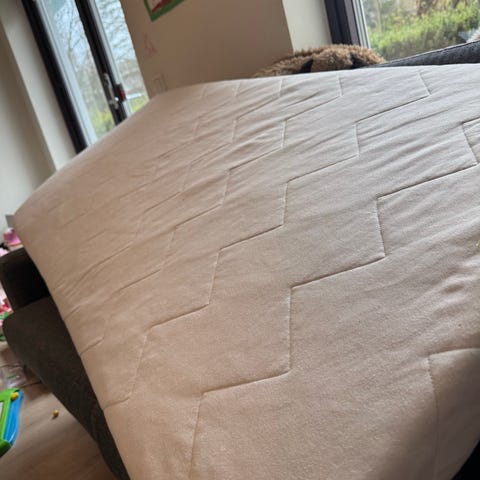 Laken selges. Nesten helt nytt. Brukt i 2 uker. Vasket og rent. Ligger støtt på senga da det går over hele øverste madrassen. Sidene på trekket går langs kanten på den øverste madrassen.
