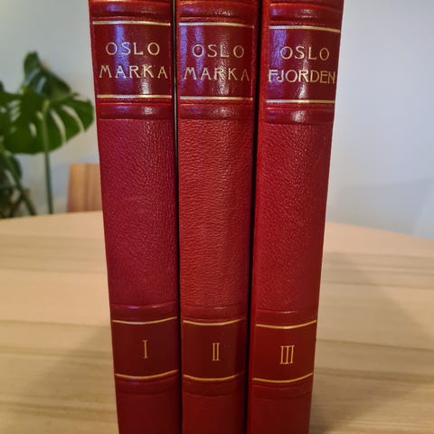 Oslomarka - Oslofjorden. Komplett sett på 3 bind. Hardcover fra 1939. Rikt illustrert. Bøkene er i meget god stand.