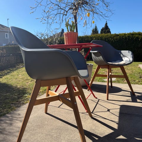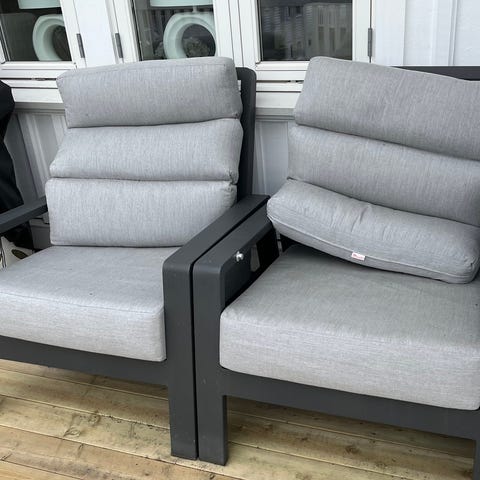Har 6 stk IKEA Fanbyn som selges. Brukt som spisestoler til utebord. Oppbevart under tak i vinter.