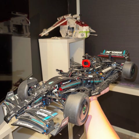 Du kan svinge hjulene med å dra på rattet og kan både være leke bil og utstilling. Settet er avsluttet og kom ut i 2019.