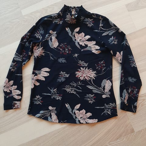 Selger en ubrukt kaffe bluse i str 34. Passer nok best en M da den er stor i str.