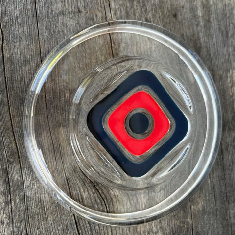 Vintage Walther glass / krystall skål med fint blomstermotiv og bølgekant.