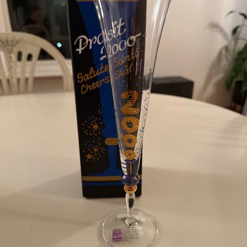 5 lekre tyske champagne glass, håndmalte til 2000 årsskiftet. Knapt brukt. Selges samlet for kr 300. Sender gjerne med helthjem.