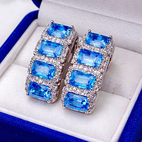 Nydelige øredobber i gullbelagt kobber, med blå zirkonia.