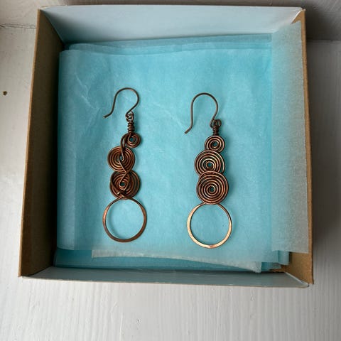 Nydelige øredobber i kobber med blå sirkonia