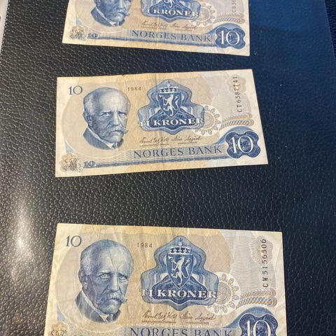 Norge 2 stk 10 kr seddel i REKKE 1984, utgave 5 Litra CÅ. Usirkulert (3792 BH)