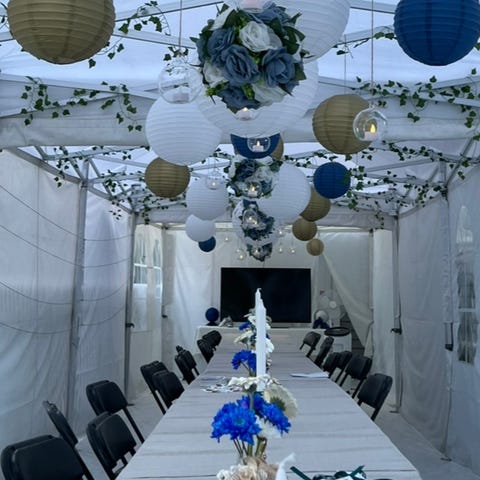 2 stk lyslenker, hver på 50m med 100 lyskilder. Med påmontert girlander (SMYCKA fra IKEA, rose/hvit) . Kan også følge med papirlanterner hvis ønskelig.