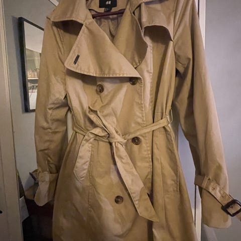 Selger Doddeltspent svart trenchcoat fra HM. Brukt bare én gang. Fremstår som ny. Størrelse 42.