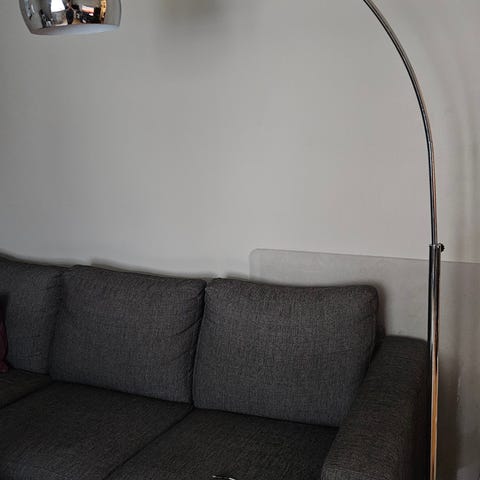 Kjempe fin og dansk inspirert taklampe i hvit og krom. Lyser kjempe fint og kan enkelt trekkes opp/ned etter eget ønske :) Ø45