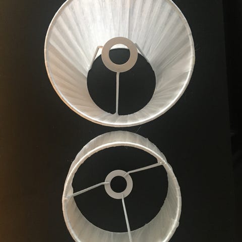 2 stk lampeskjerm til bordlampe/nattlampe. Lett sølv støff. Ingen bruksmerker. Passer til E14.