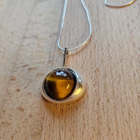Veldig fint smykke med langt kjede i sølv og anheng med stein