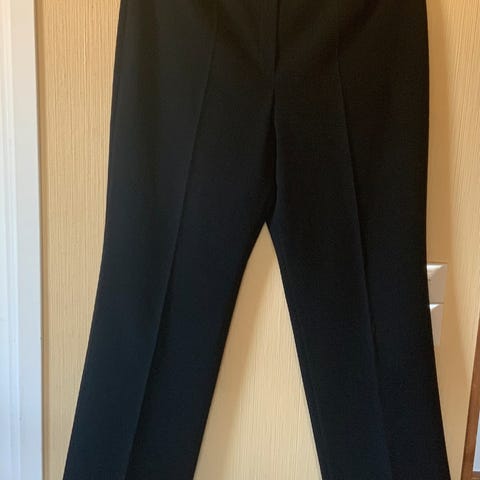 Bukse str 44 fra o’kiss Paris. 94 % polyester og 6 % elastisk. Oppbrett nede. Hemper for belte. Litt tung og stødig. Fint snitt. Kr 185,-. Kan sendes. Kan også sendes med Fiks ferdig.