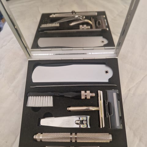 Mühle reisemappe til barbering, barberhøvel og barberkost